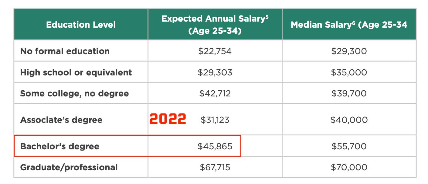 Going back one more year, the numbers get even more reasonable. For those graduating with a bachelor’s degree, ZipRecruiter reports their “Expected Annual Salary” as $45,865, a full $10,000 lower than the listed Median Salary in the report.
