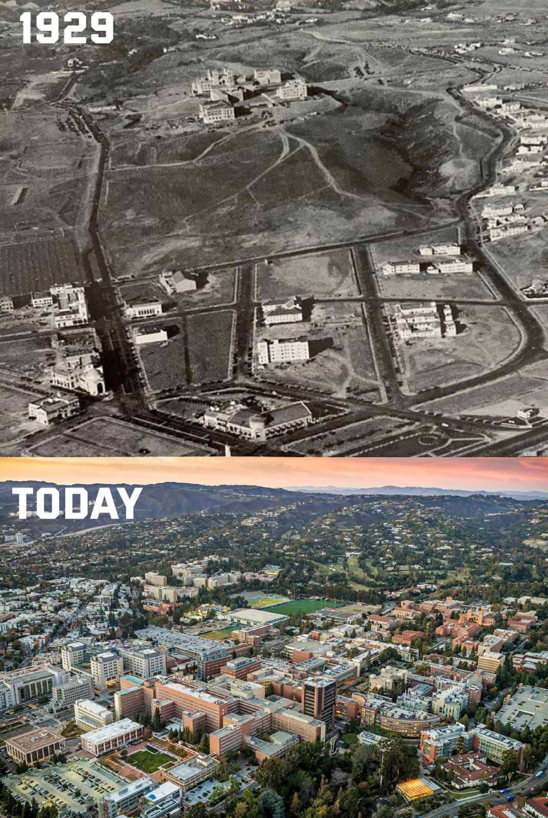 I want a mix of housing stock. Some big luxury towers for our pampered students, noisy frat houses on Greek Row, an ADU behind a professor’s house, a mid-rise apartment built in the ‘60s before they were banned, and a lot of on-campus housing for everyone.