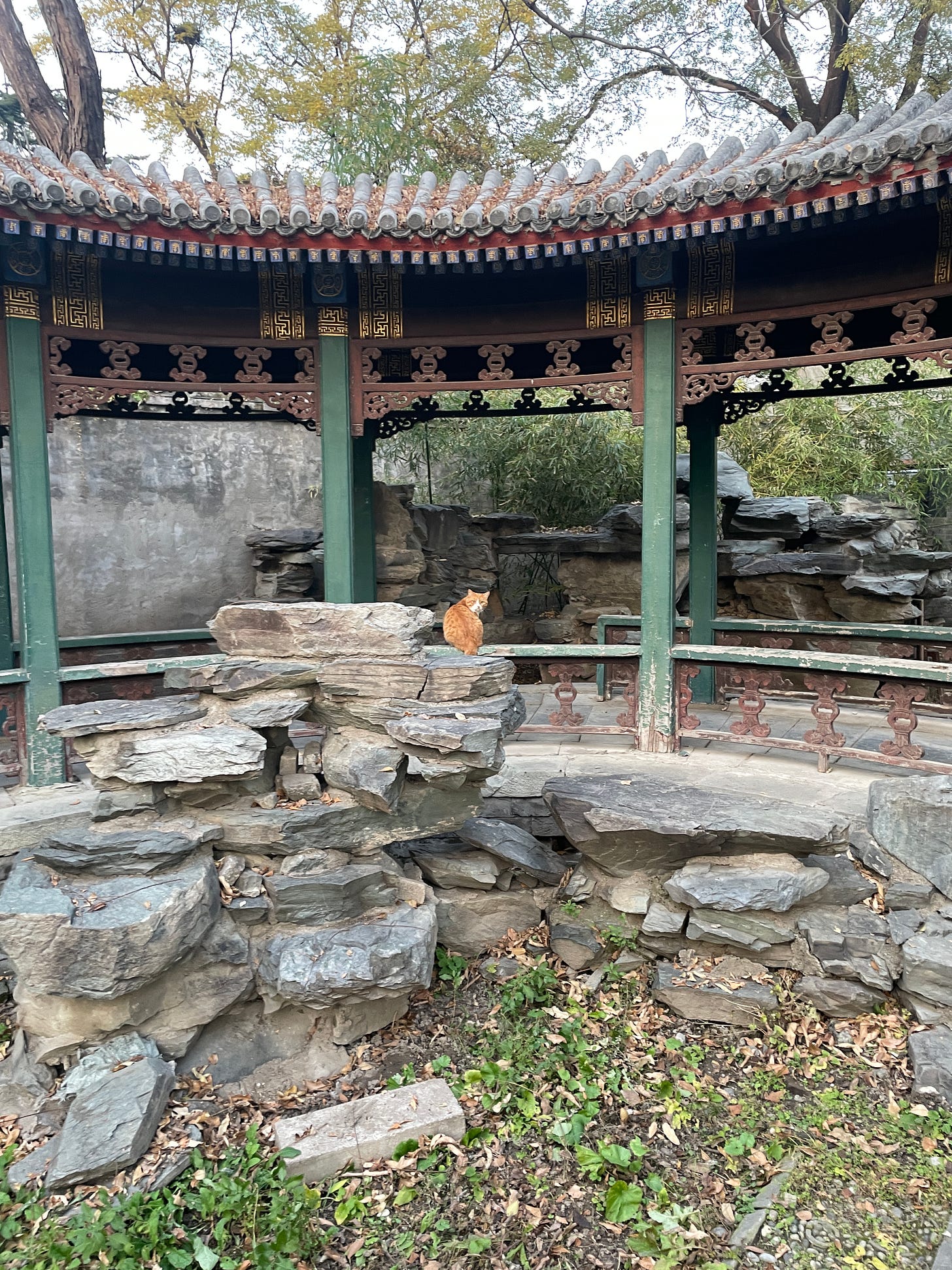Just like on closed college campuses in the US, once the humans go away, the animals come out to play. A little orange tabby was keeping an eye on our group as we toured the facilities. No doubt that we dared disturb his kingdom. Even in a busy city, and in a very crowded tourist site (as shown below), the campus is peaceful enough for a catnap. Inside the walls, it’s peaceful. Outside, on the other hand…